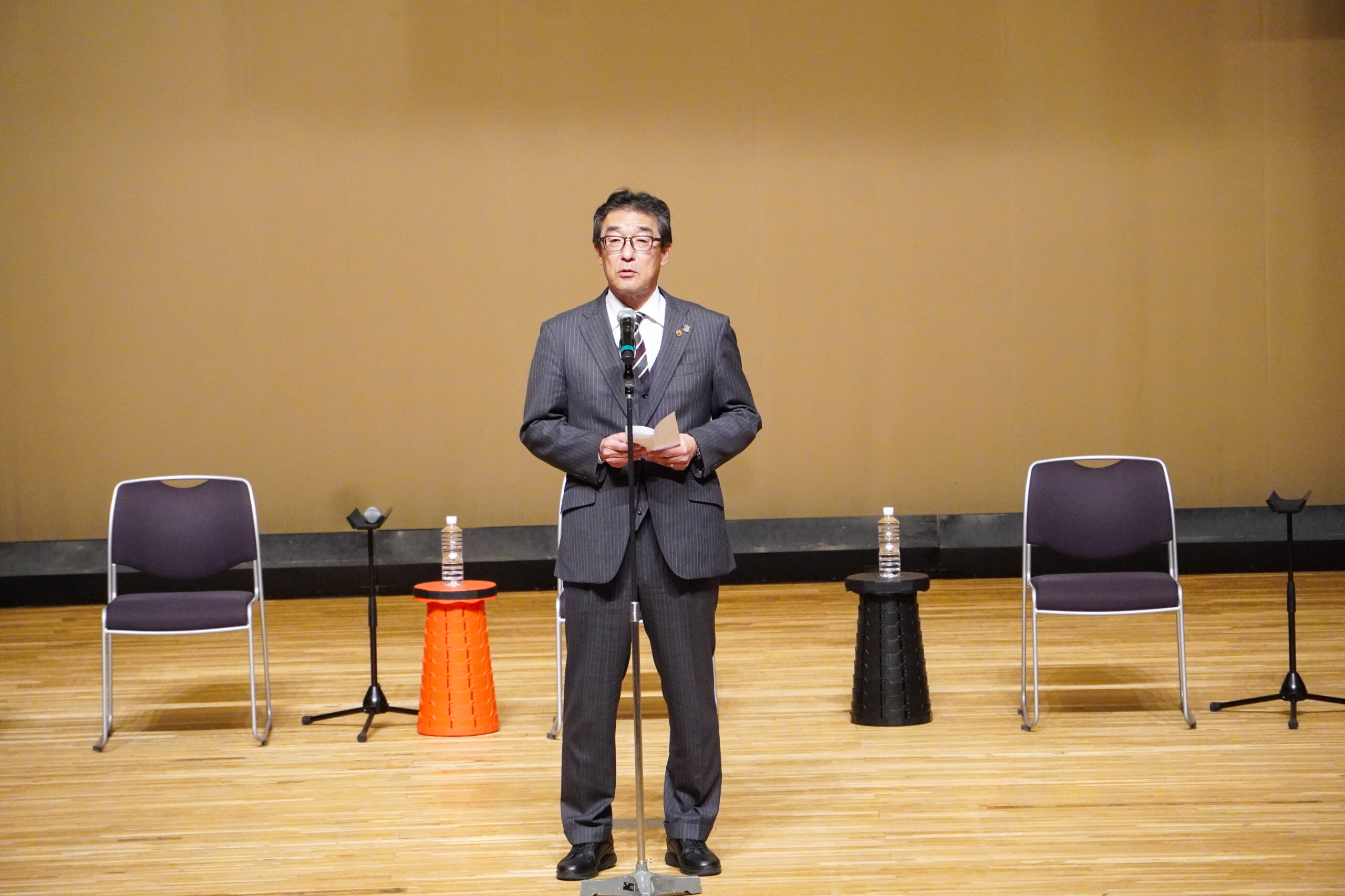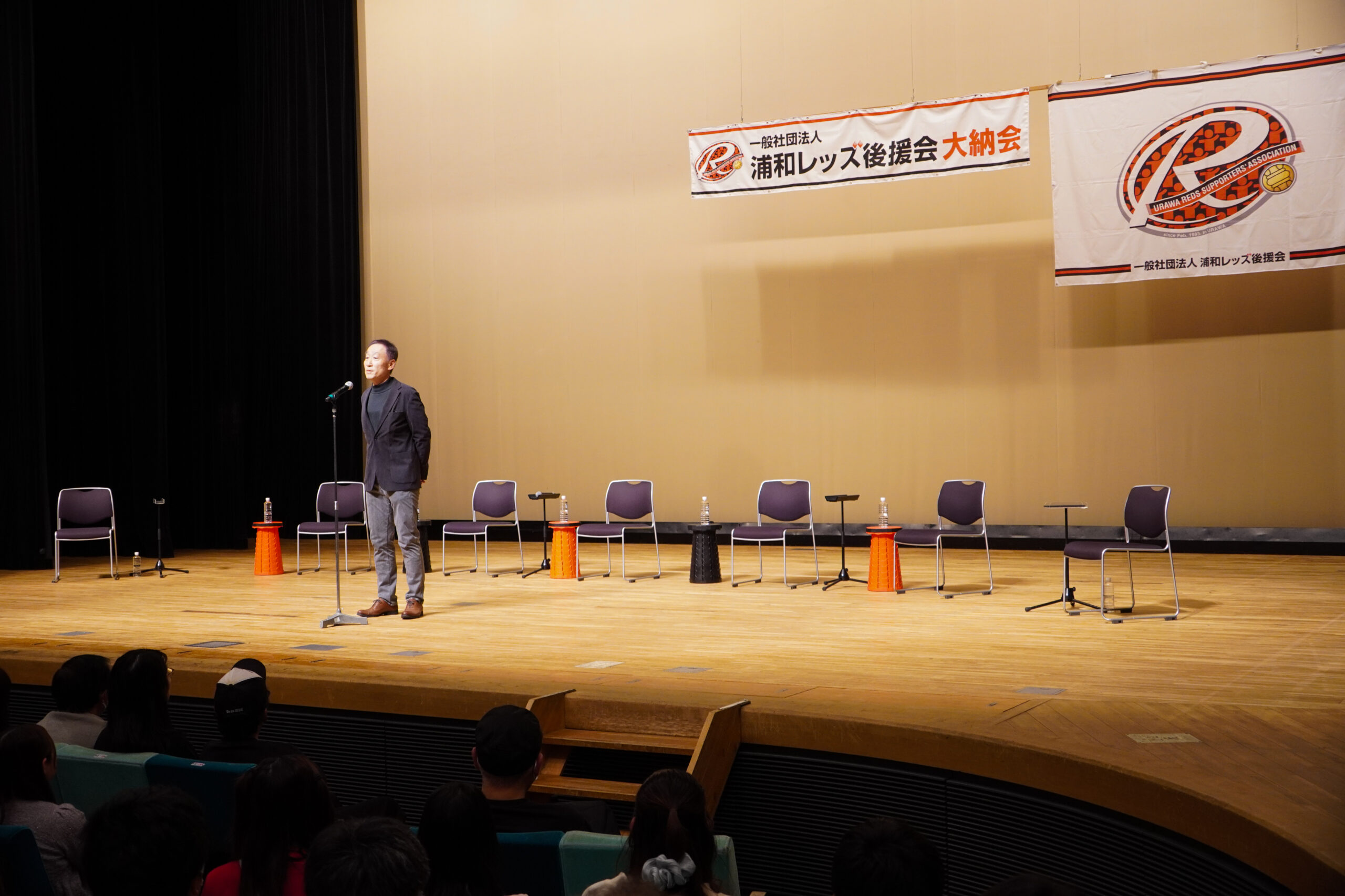 毎年恒例となっている『浦和レッズ後援会大納会』。主催者を代表し、浦和レッズ後援会・福田知孝副理事長の挨拶から始まりました。