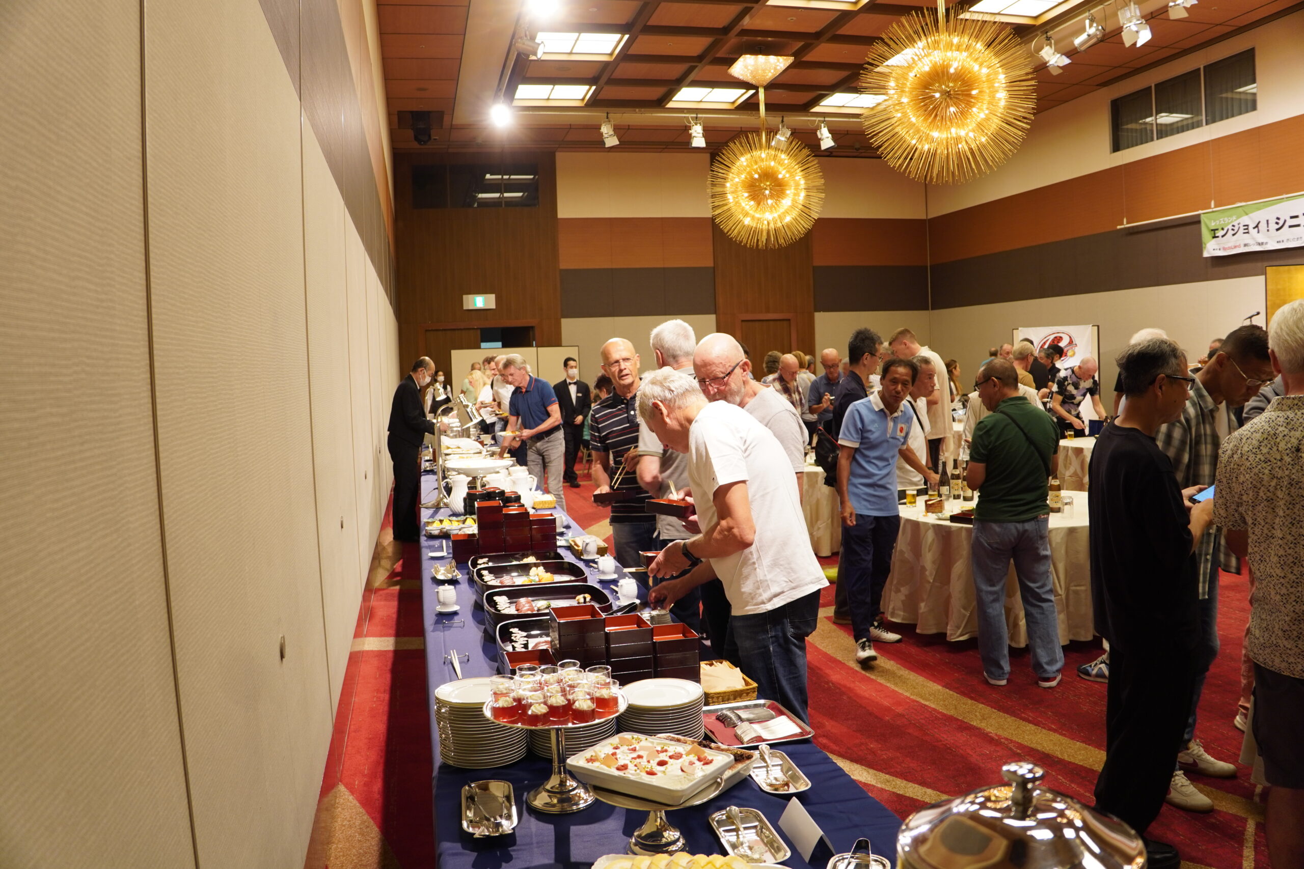 「懇親会」では、お寿司やおそばなどの日本食のほか、日本酒なども用意。ドイツ選抜チームに「日本」を感じてもらえる“おもてなし”の中で、和やかな懇親会が進みました。
