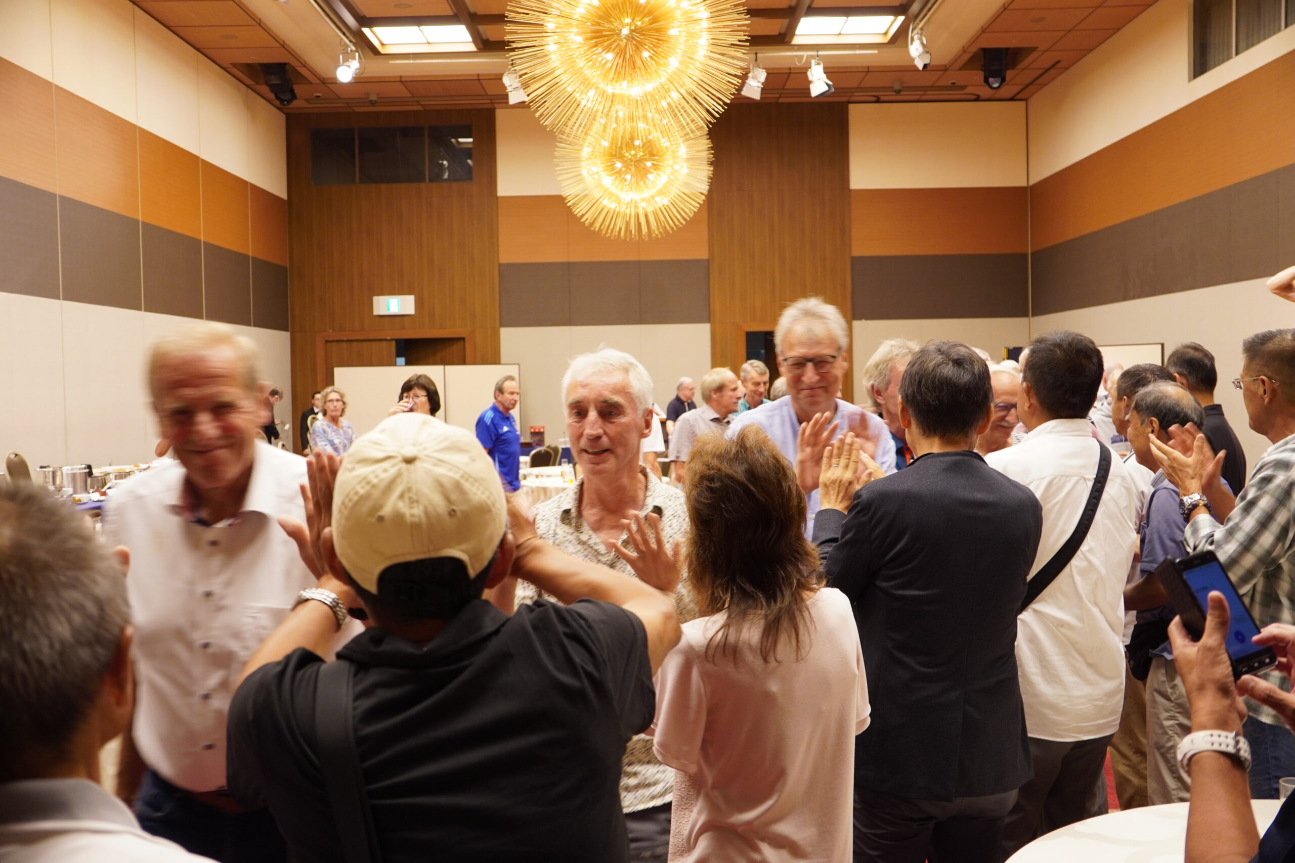 後援会シニアチームを代表して、アドバイザーとしてもチームをまとめ活躍をした坪谷武安さんは「このような交流の場を設けていただきありがとうございます。サッカーができることに喜びを感じています。ドイツサッカーは憧れでした。そのチームと一緒にボールを蹴ることができるのは奇跡のようなうれしさがありました。ドイツ選抜チームは止める・蹴るという基本が本当にしっかりしていて、皆さんを目標にまたがんばっていきたいなと思います」と話すと、会場は大きな拍手に包まれました。