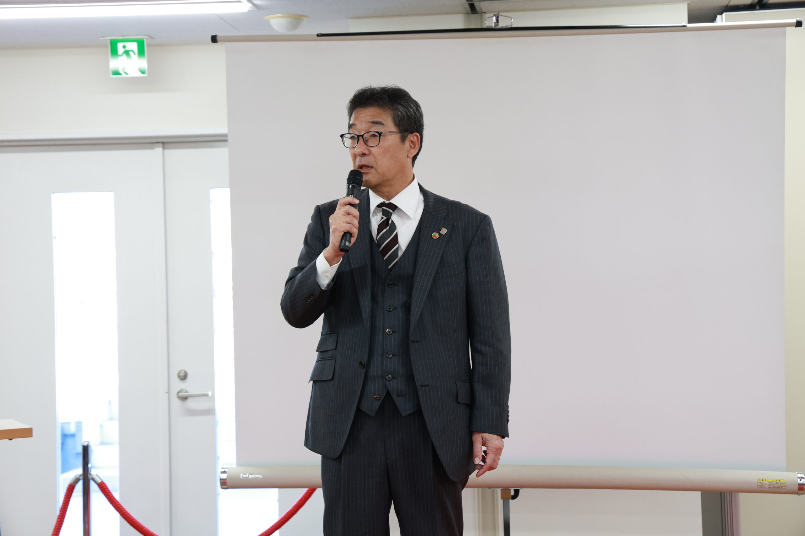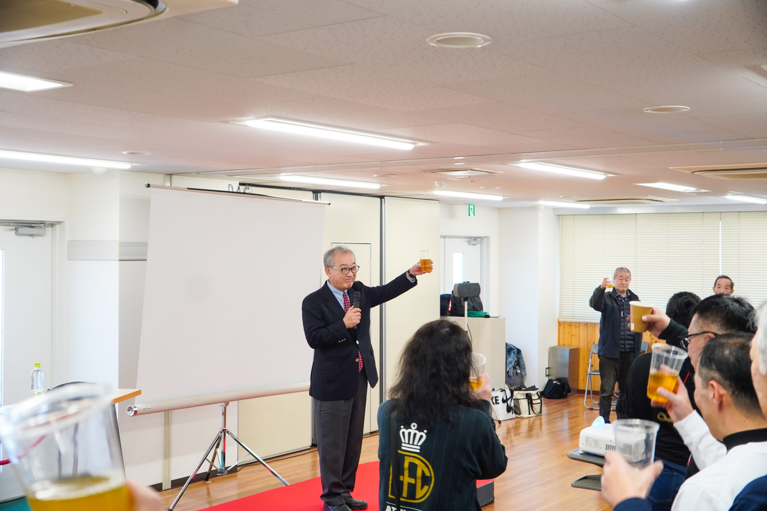 続いて主催者を代表し、浦和レッズ後援会猪股和則理事長より「今日はたくさんのみなさまにお集まりいただき誠にありがとうございます。この30年の間には、さまざまな活動をスチュワードのみなさまと一緒に行ってまいりました。今後もスチュワードのみなさまと一緒に、レッズや地域を盛り上げる活動を進めていければと思います」という言葉が贈られました。