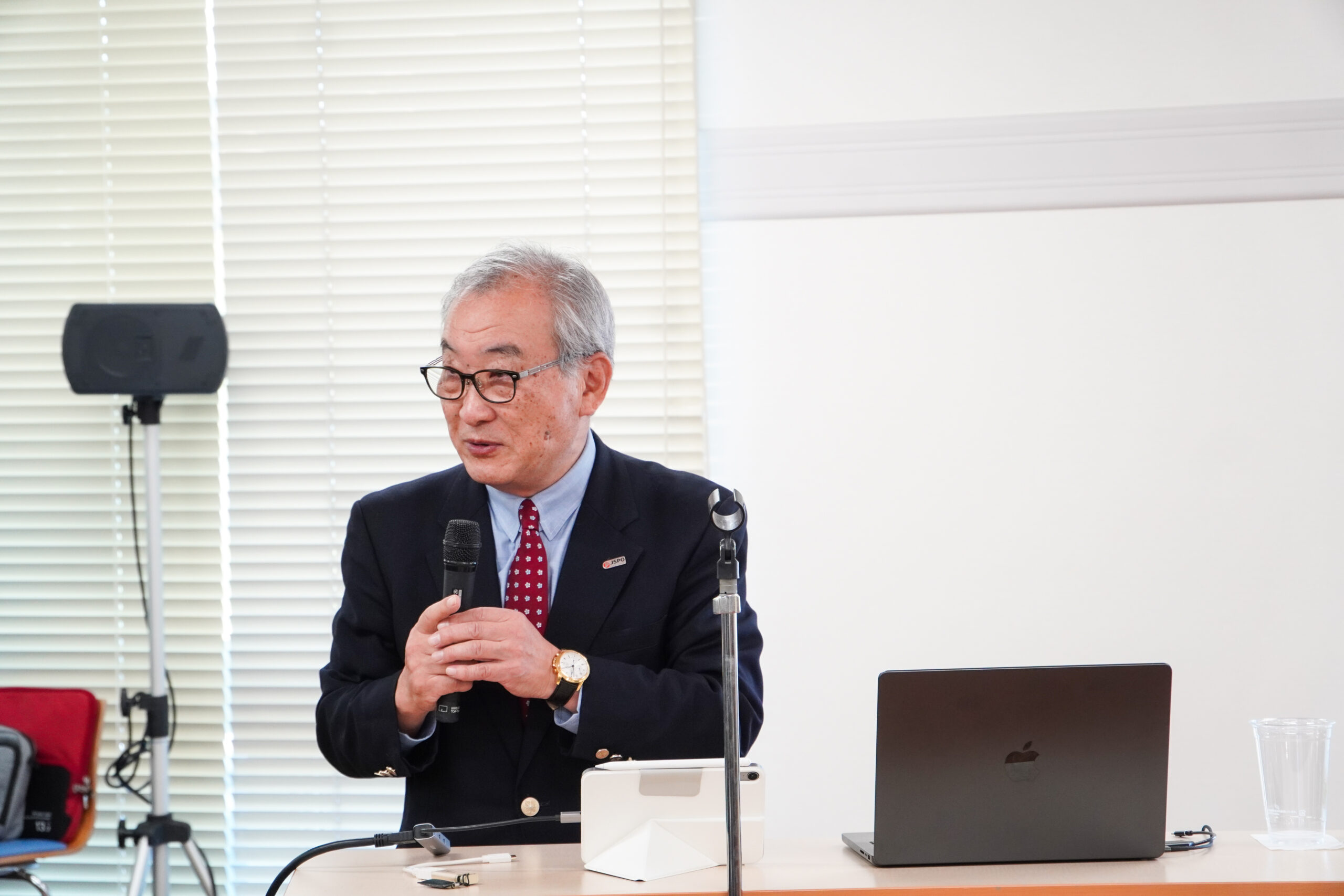 まずは、サッカー実況でおなじみの元NHKアナウンサー・山本浩さんの特別講演です。「古きを温ね未来を創る」というテーマで講演が進みます。講演の中で山本さんはレッズやサッカーにまつわるエピソードは盛り込まれる中、名実況の再演には大きな拍手と歓声も沸き起こる場面も。